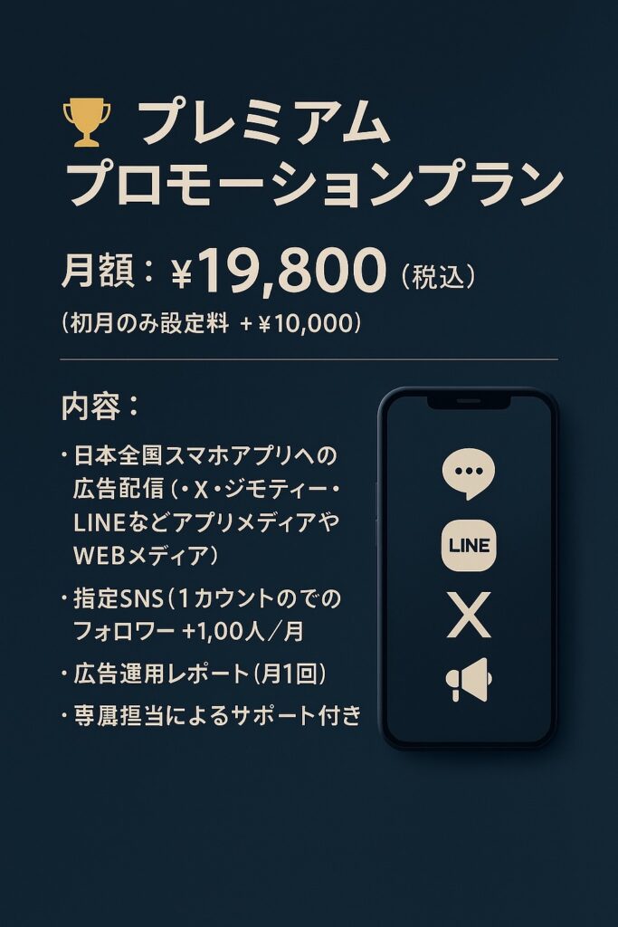自然・健康・心・食・文化を、発信力でつなぐ循環型事業 私たちは、人の暮らし・健康・心・経済が循環する社会を創るため、自然・医療・福祉・文化・情報発信を一体とした事業を展開しています。キャンプ場や会員制別荘で自然と共に過ごす時間を提供し、農業や養蜂場では「食」と「命の恵み」を育み、医療クリニックと福祉事業で心身の健康を支えます。さらに、広告システム・SNSマーケティング・LIVE配信を活用し、これらの価値を社会へ広く発信し、人と人、想いと経済をつなげる循環型の事業モデルを構築しています。 広告の詳細をスマホ動画でご紹介 プレミアムプロモーションプランのご紹介